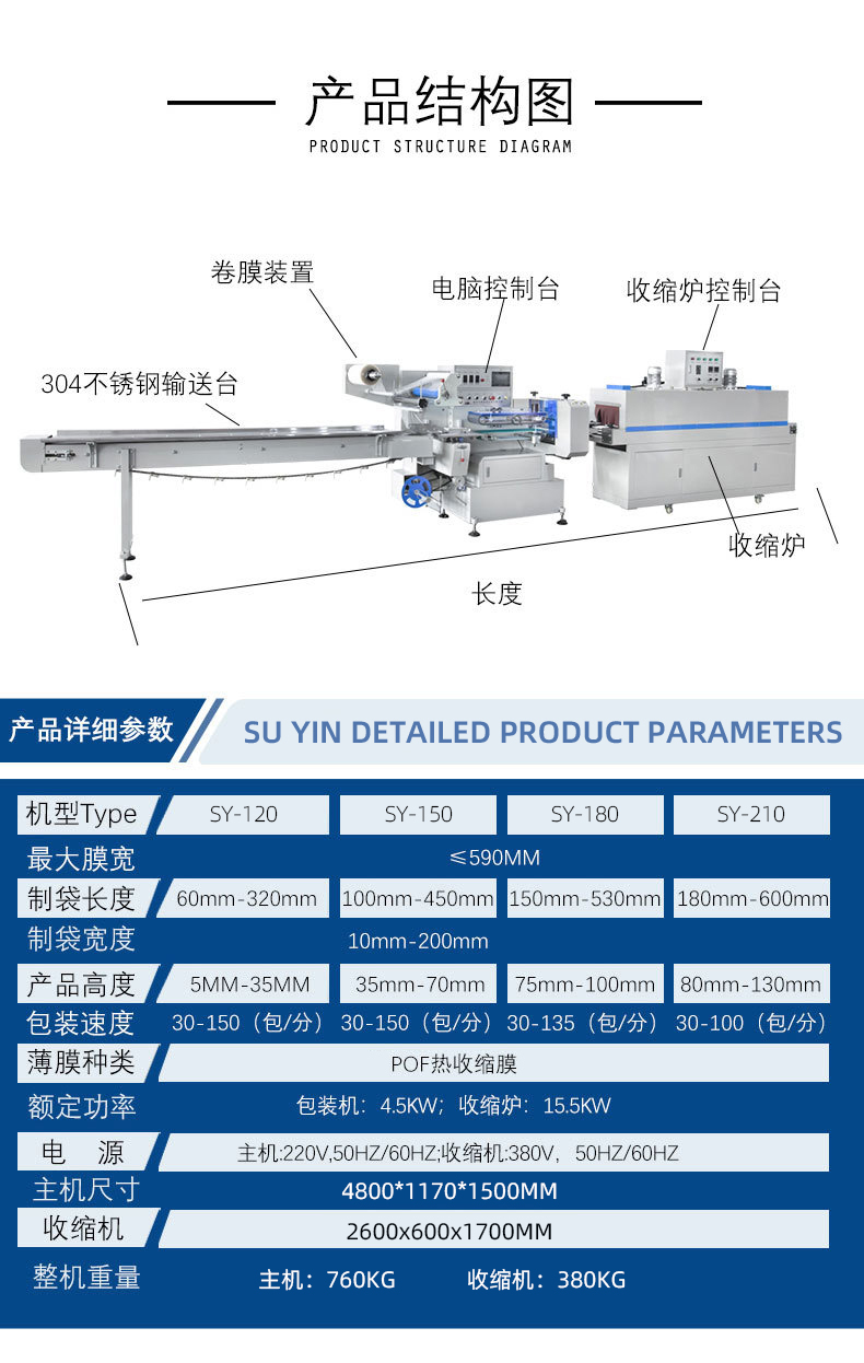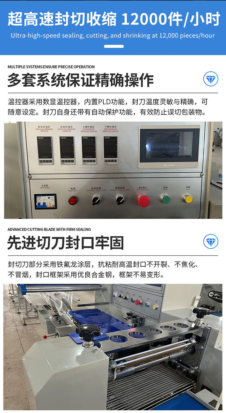 高速热收缩膜包装机化妆品套盒POF塑封机全自动枕式热收缩包装机