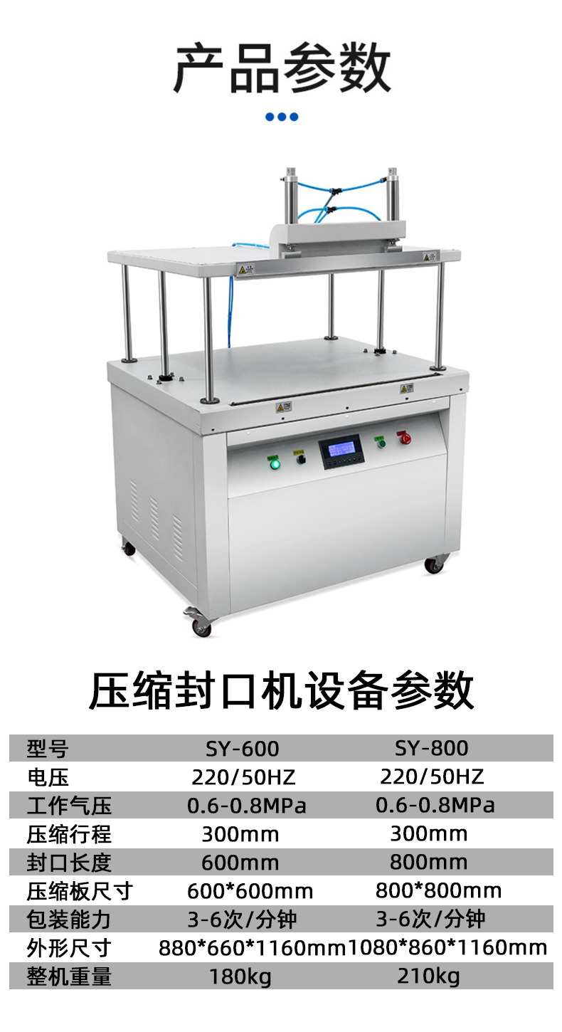 600/800压缩真空封口机机械棉被枕头枕芯羽绒服衣服压缩式封口打包机
